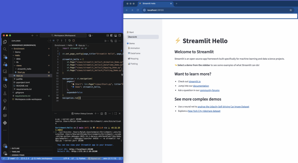 Ein Browserfenster öffnet sich – Streamlit funktioniert! ✅