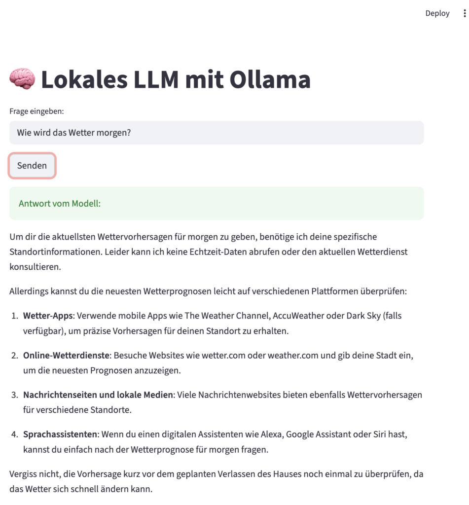 KI-App Entwicklung mit Python, Ollama & Streamlit